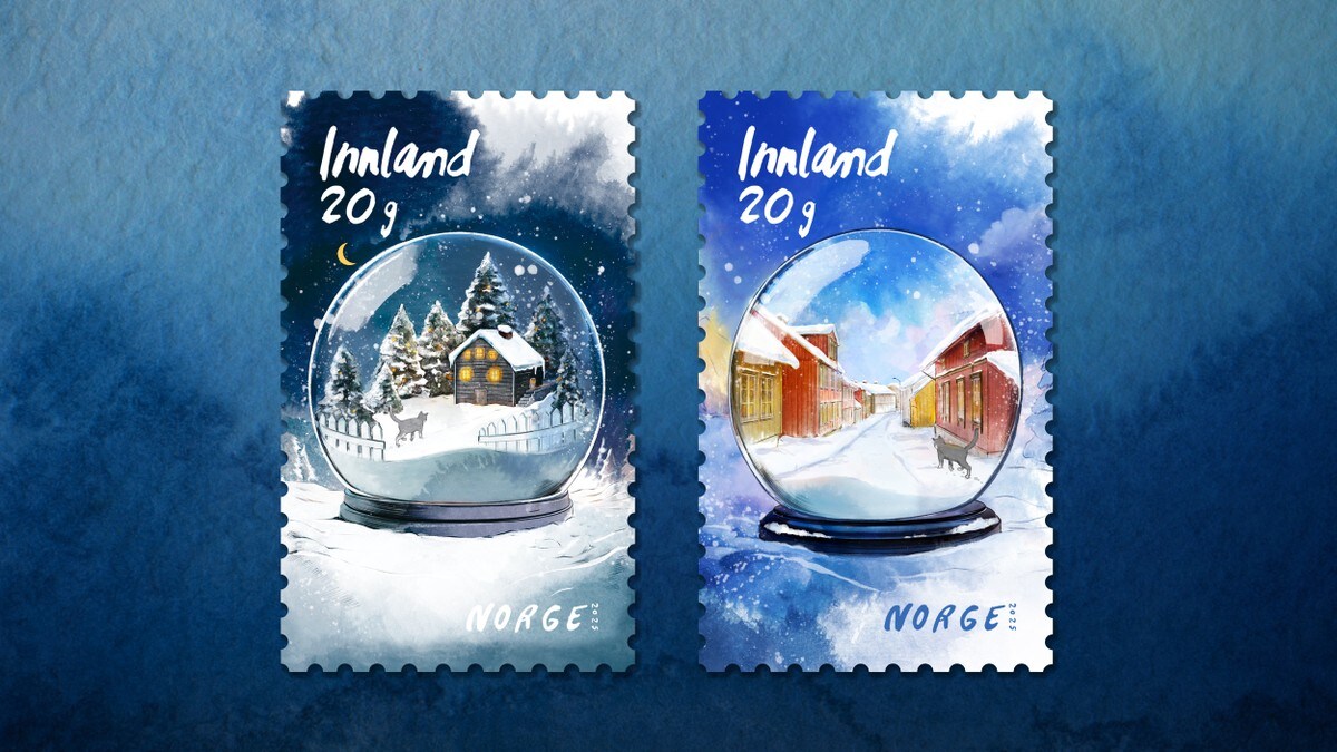 Postens julefrimerke 2025 er klare, og i år er det illustratør Esra Røise som står bak motiva. Dei nye frimerka viser snøkuler med motiv frå Klokkarstua i Hurum og Kampen i Oslo, begge stader med personleg betydning for kunstnaren. – Ingenting gir meg meir julestemning enn barndomsheimen på Klokkarstua, med både skog og fjord i nærleiken, seier Røise.